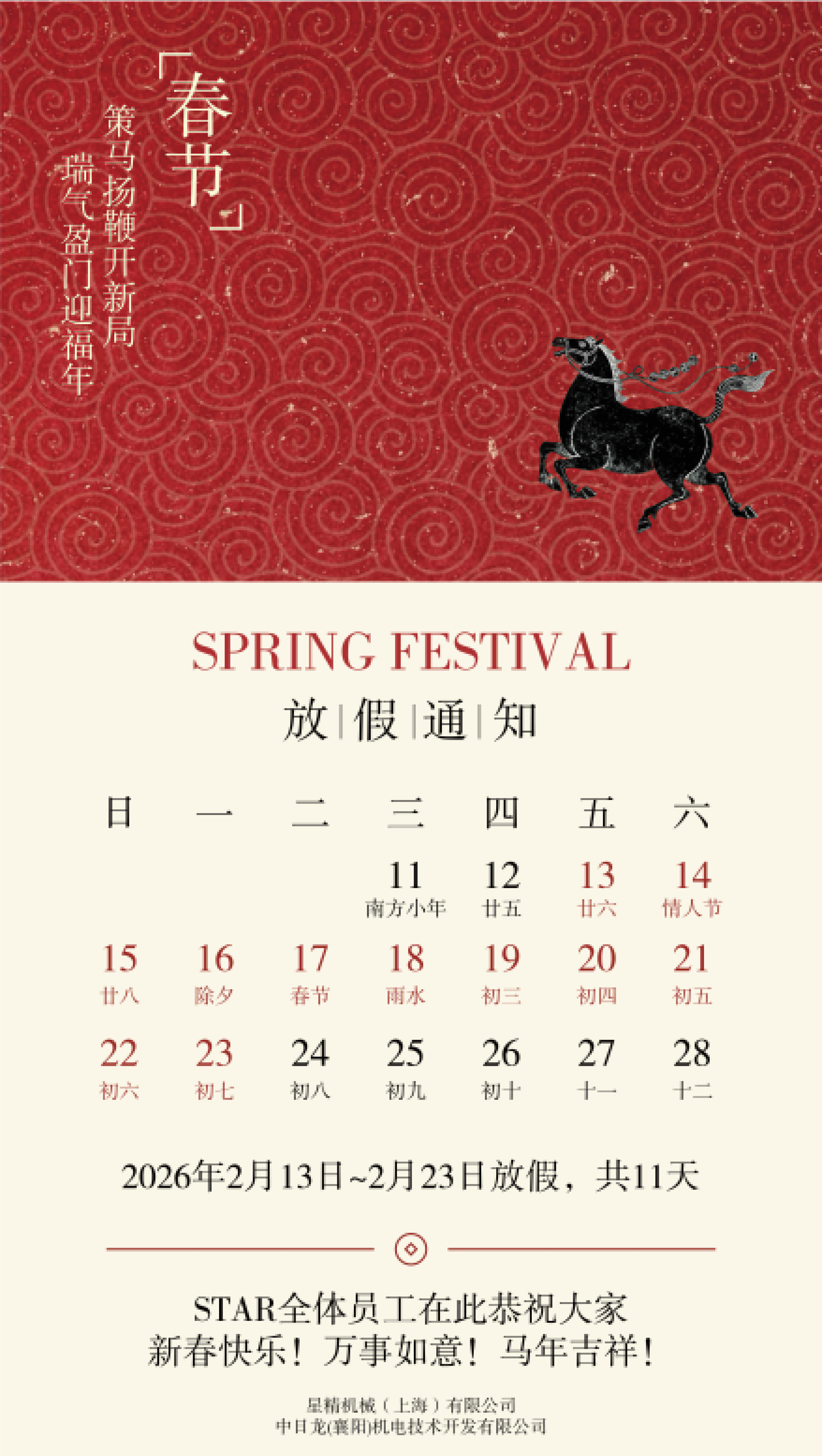 STAR集團春節放假通知