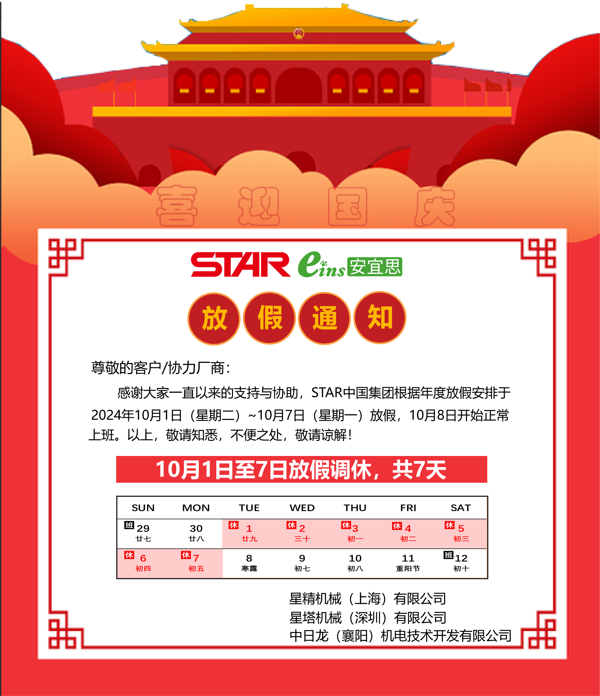 STAR中國集團(tuán)放假通知